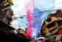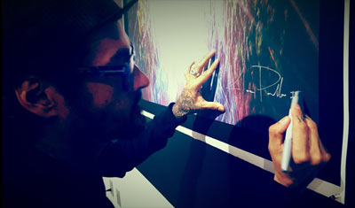 He's also one of the pioneers in a medium led by drummers dubbed "rhythm-on-canvas".  As many saw in his 2013 release "Abstract + Rhythm Landscapes", Pasillas showcased how utilizing drumsticks that light, much like a painter uses paint brushes, can produce unique abstract visuals.  Pasillas' 2013 collection holds the unique place of the fastest selling collection in art publisher SceneFour's history.